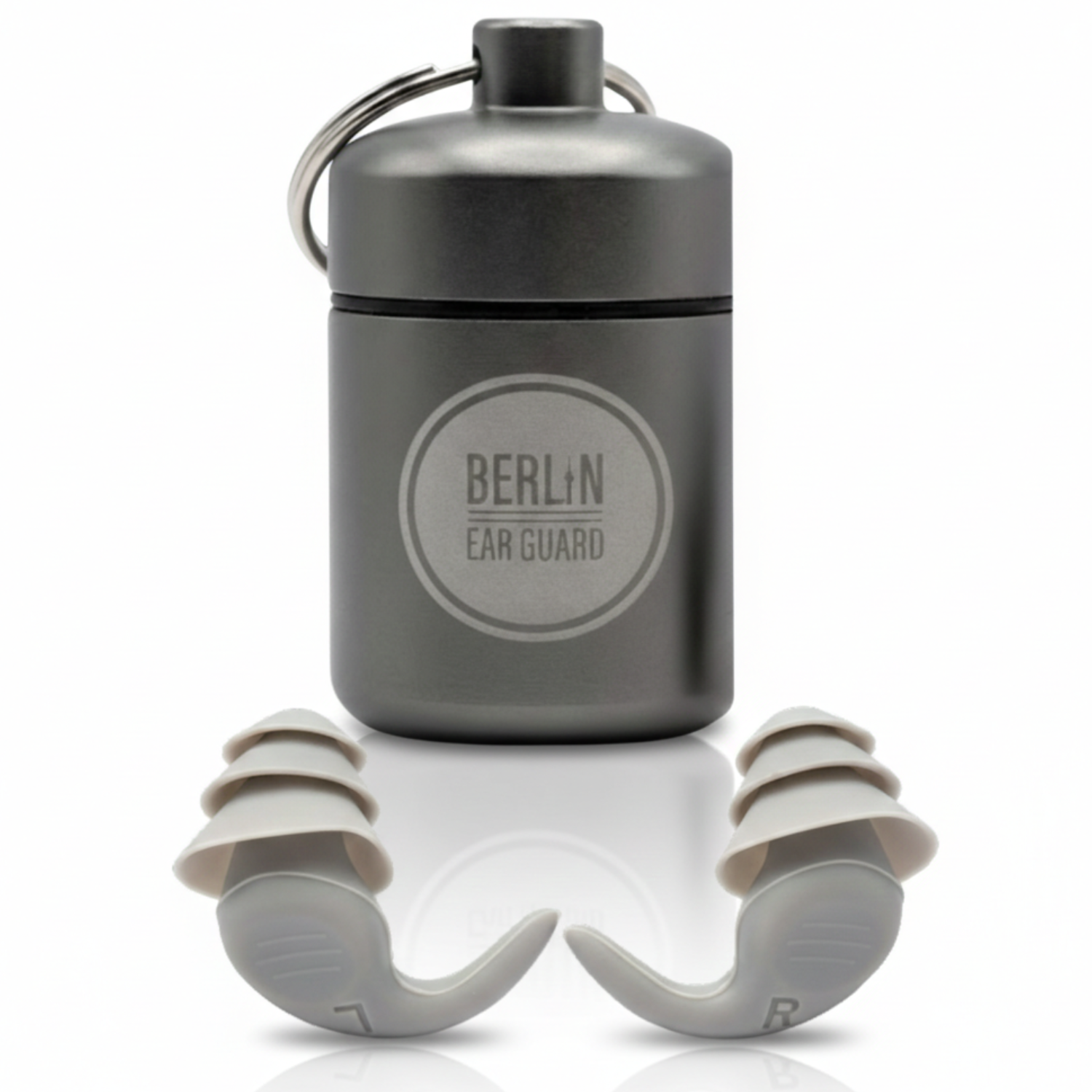 28 dB starke Schalldämmung. Besonders wirksam gegen Schnarchgeräusche. Grau und elegant, aus extrem weichem Spezial-Silikon. Komfort, als würden deine Ohren auf Wolken schlafen.